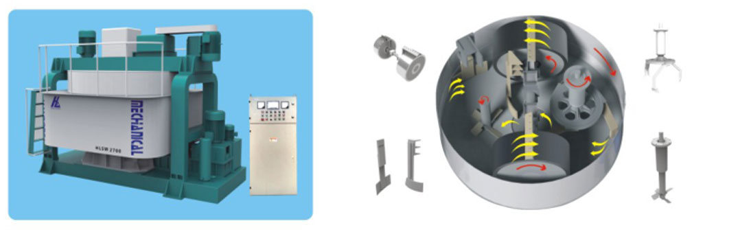 華隆混砂機適用于各種不同材質的粉末原料的混合,混合時間短,混合效率高,可加裝自動加液裝置和加熱裝置,具備各種水性、樹脂、及焦油瀝青結合 混合制品、澆注料、輕質耐火材料制品的輔料、泡沫物料、耐火泥漿、泡泥、及預制件等制品的混合。